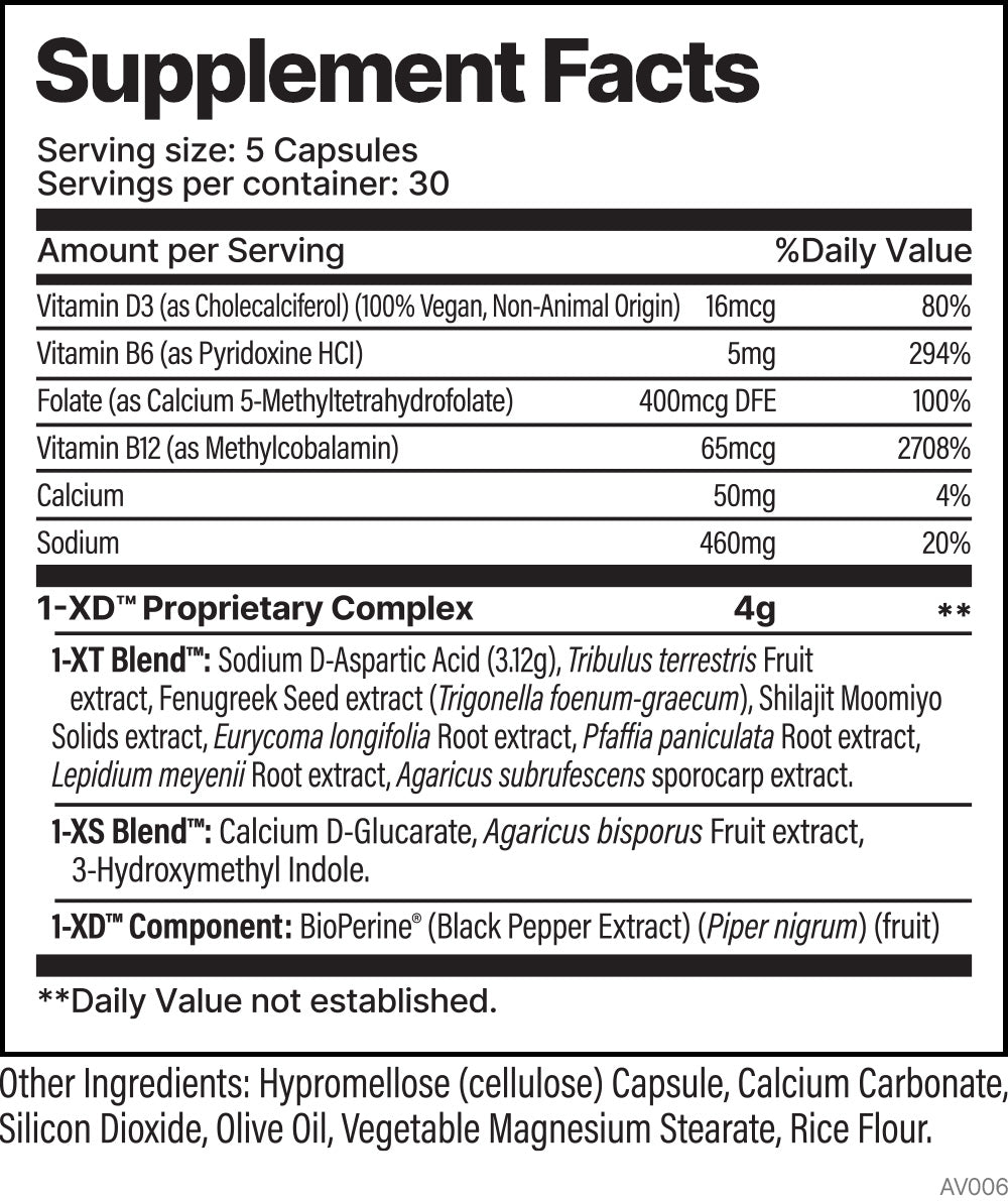 Attention Men! We know you want to be the best you can be in everything you do, whether it’s at work, at home, in the gym or wherever. With you in mind, FORZAONE Performance Nutrition® created 1-XD™, a proprietary male complex with the human-studied dose of 3.12 grams of Sodium D-Aspartic Acid per serving. But they didn’t stop there! 1-XD™ also contains other male-support ingredients like Tribulus Terrestris, Fenugreek Seed Extract and BioPerine®. So go ahead, take on each day with renewed vigor with 1-XD™.