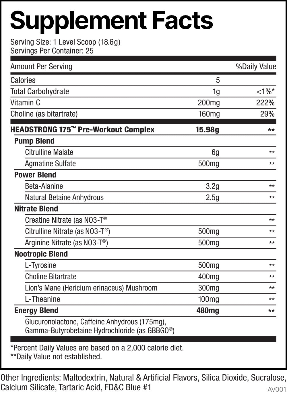 Headstrong 175 is a great choice for fitness enthusiasts who may be sensitive to stimulants or prefer to work out at night but still want a high-performance product. For those who want that hard-hitting, “high-stim” feeling, check out the original HEADSTRONG. Get your head in the game! Get Headstrong 175!